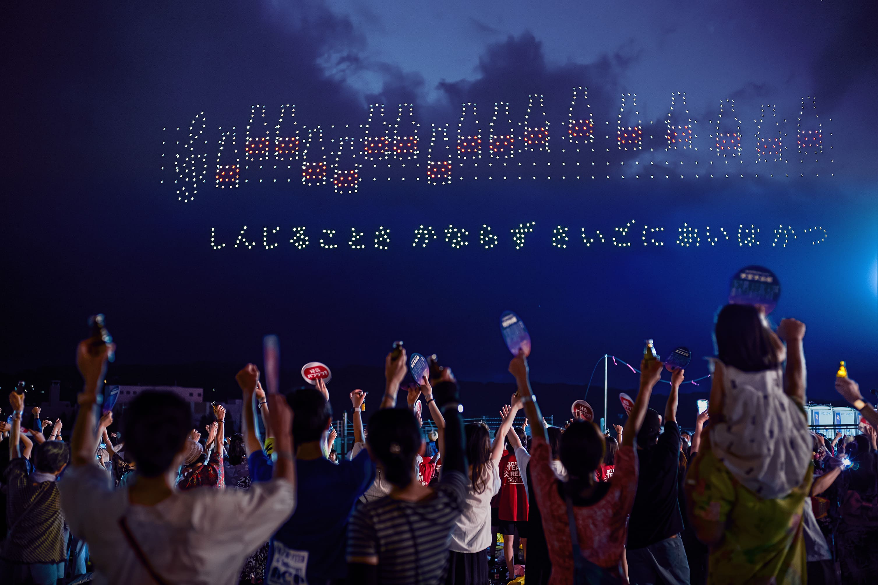 - 何より見ていて元気を与えてもらいました。見せるだけのドローンショーではなく、観覧者自らが参加者となり、その歌声さえもドローンショーの演出のひとつに組み込まれて一体感がより一層高まっている。かなりのインパクトあり。
